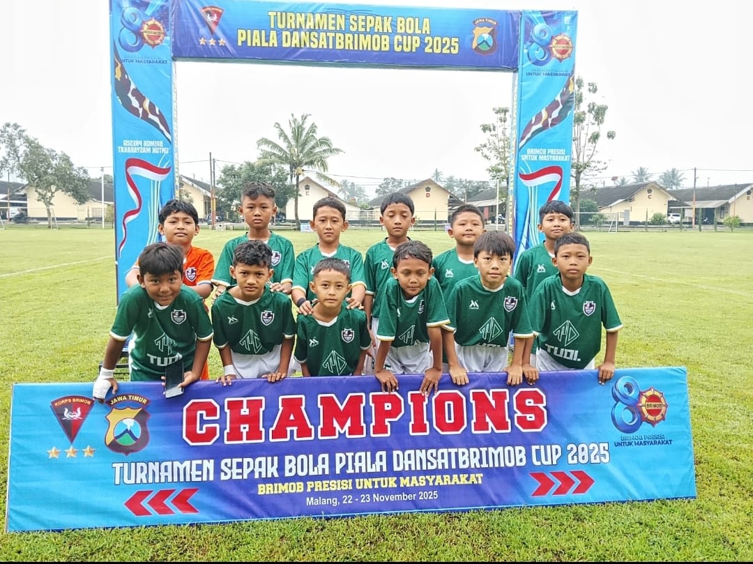 BANYUWANGI, Kupasinfo.com – Komitmen Diponegoro United Juniors (DU) dalam membina talenta muda kembali membuahkan hasil membanggakan. Sekolah Sepak Bola (SSB) yang berdiri sejak 2021 ini berhasil meraih juara Runner-Up Turnamen Sepak Bola Piala Dansat Brimob Cup 2025, yang digelar di Lapangan Ampeldento, Mako Brimob Malang, pada Sabtu (22/11/2025). Ajang bergengsi tersebut diikuti oleh 24 klub usia dini se-Jawa Timur.
