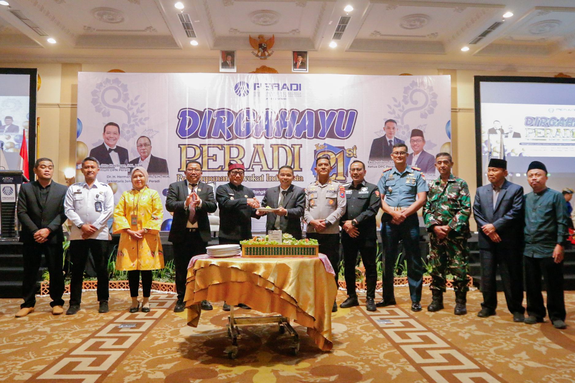 Banyuwangi, Kupasinfo.com - Dewan Pimpinan Cabang Perhimpunan Advokat Indonesia (PERADI) Banyuwangi memperingati Hari Ulang Tahun (HUT) PERADI ke-21 dengan menggelar acara resmi di Bali Room Hotel Aston Banyuwangi, Kamis (18/12/2025). Kegiatan ini diikuti seluruh advokat PERADI se-Kabupaten Banyuwangi serta dihadiri jajaran Forkopimda dan pemangku kepentingan penegakan hukum.