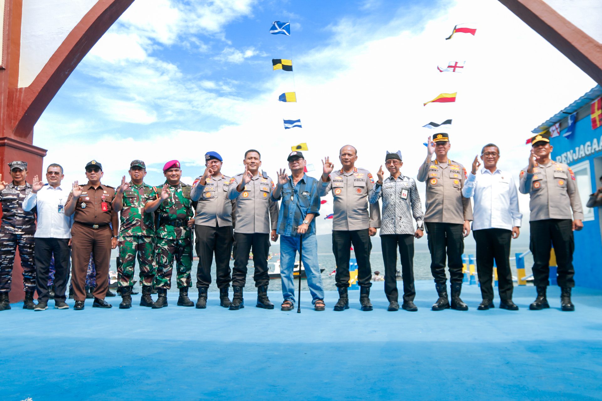 Momentum tersebut dihadiri jajaran pejabat lintas sektor, mulai dari Penasihat Ahli Kapolri Prof. Hermawan Sulistyo, perwakilan Pemkab Banyuwangi Dr. Ir. Guntur Priambodo, Kapolresta Banyuwangi Kombes Pol Rama Samtama Putra, serta unsur TNI, operator pelabuhan, instansi maritim, dan komunitas nelayan. Hadir perwakilan dari ASDP, Bea Cukai, KSOP, BPTD, Pelindo, Pertamina, Kejaksaan Negeri Banyuwangi, serta stakeholder pelayaran lain di Selat Bali.