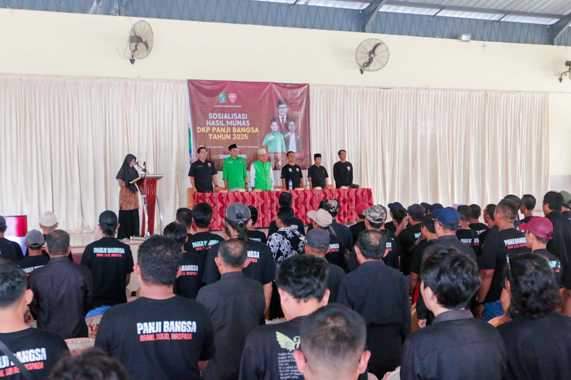 BANYUWANGI, Kupasinfo.com - Dewan Koordinasi Cabang (DKC) Panji Bangsa Kabupaten Banyuwangi menggelar sosialisasi hasil Musyawarah Nasional (Munas) Dewan Komando Pasukan (DKP) Panji Bangsa Tahun 2025. Kegiatan berlangsung pada Jumat (06/12/2025) di Ballroom Hotel Baruu Indah, Jajag, Kecamatan Gambiran, dan diikuti ratusan anggota Panji Bangsa dari berbagai kecamatan di Banyuwangi.