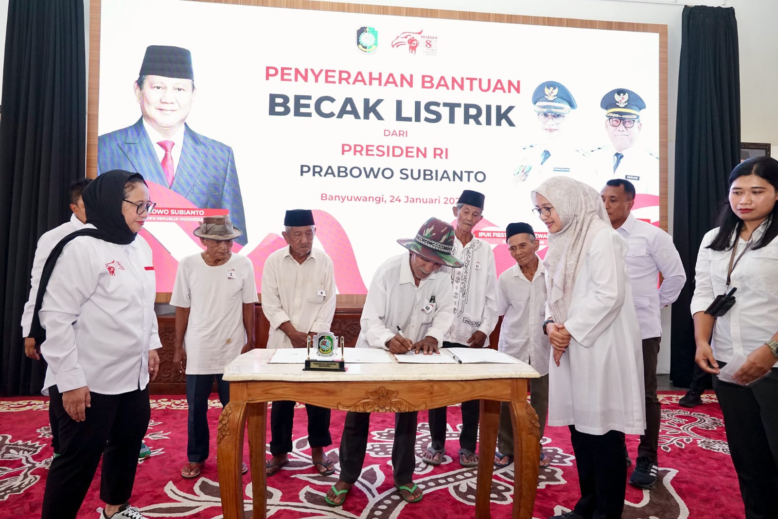 Di Usia Senja Tak Lagi Mengayuh Berat, Tukang Becak Banyuwangi Terima Bantuan Becak Listrik Dari Presiden Prabowo Subianto